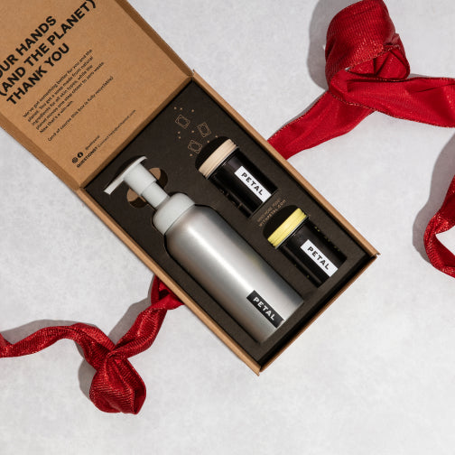 Gift our exclusive plastic-free, all natural foaming hand soap in two gorgeous scents. Petal starter kits in all colors and scents are just $12.99 this holiday season.