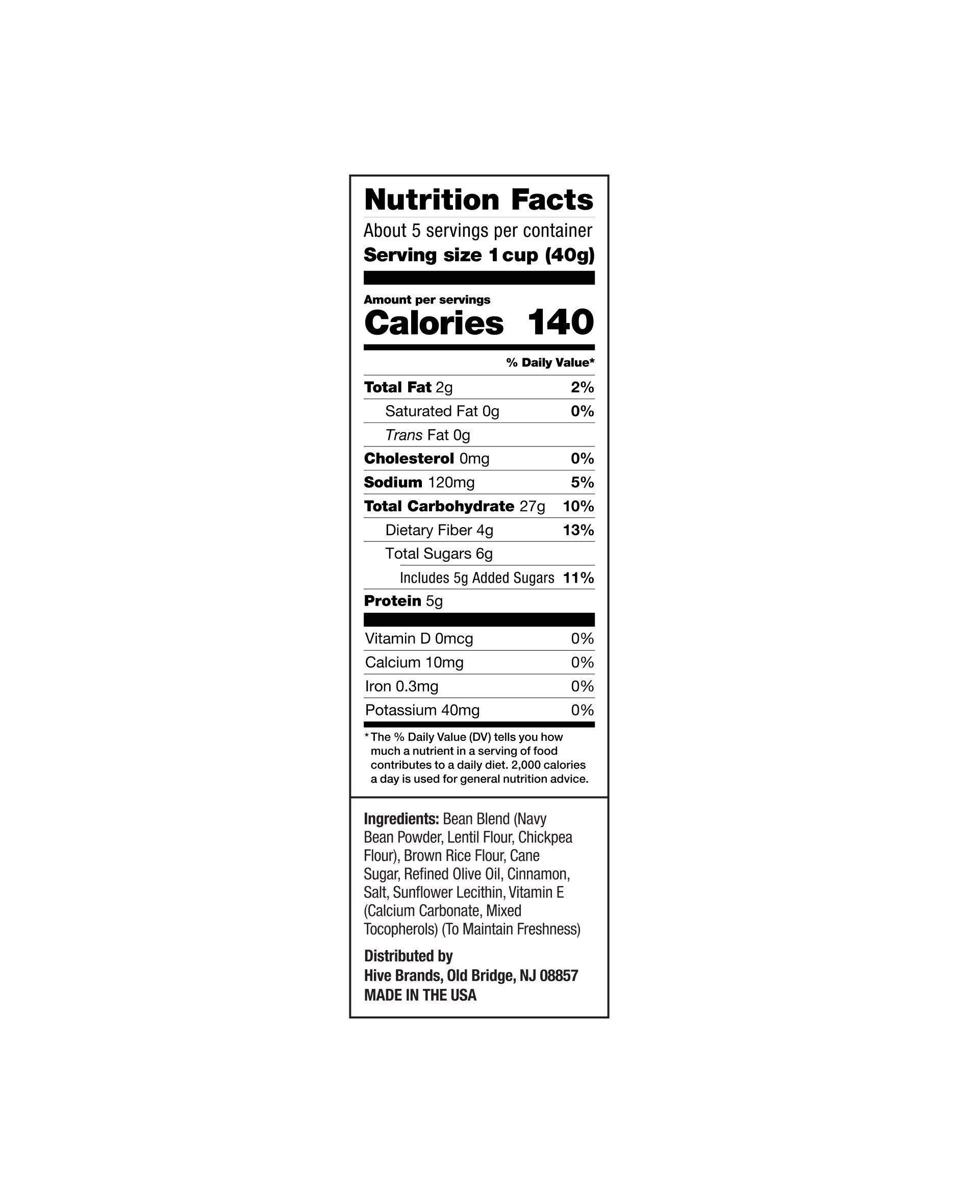 INGREDIENTS: BEAN BLEND (NAVY BEAN POWDER, LENTIL FLOUR, CHICKPEA FLOUR), BROWN RICE FLOUR, CANE SUGAR, REFINED OLIVE OIL, COCOA (PROCESSED WITH ALKALI), SALT, NATURAL FLAVOR, SUNFLOWER LECITHIN, PURPLE SWEET POTATO JUICE (FOR COLOR), VITAMIN E (CALCIUM CARBONATE, MIXED TOCOPHEROLS) (TO MAINTAIN FRESHNESS), CITRIC ACID